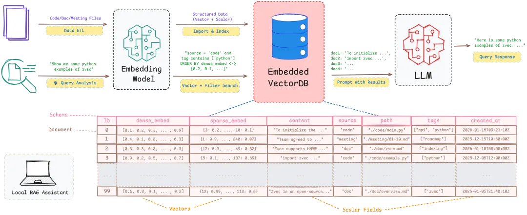 Zvec 从设计之初即以 RAG 场景为首要目标,向量能力完整覆盖 RAG 全生命周期,体现为以下核心能力: