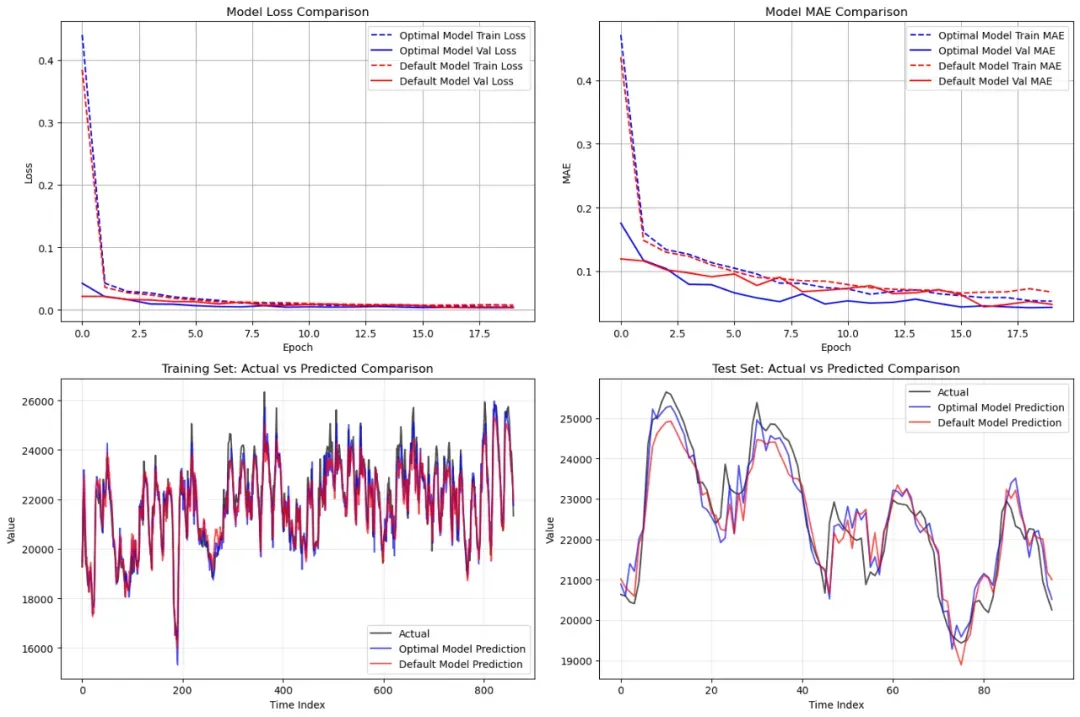 贝叶斯优化通过高斯过程(GP)代理模型拟合超参数与验证损失之间的黑箱函数,利用期望改进(EI)等采集函数指导下一次采样。在LSTM超参数优化中,其搜索效率比网格搜索高40倍。本文采用Optuna框架实现并行化贝叶斯优化,支持早停机制以避免无效探索。