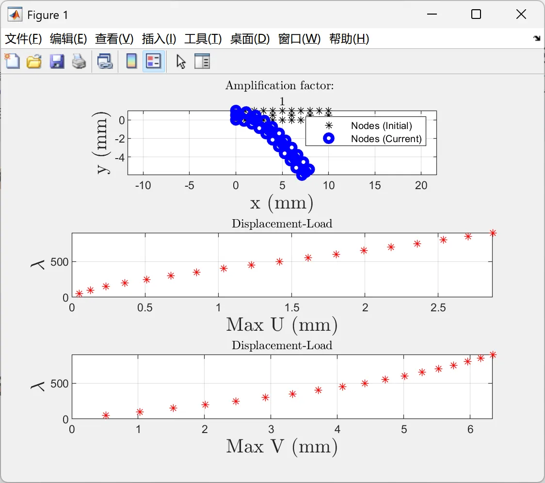 - 材料属性:弹性模量200GPa,泊松比0.3,考虑几何非线性。
