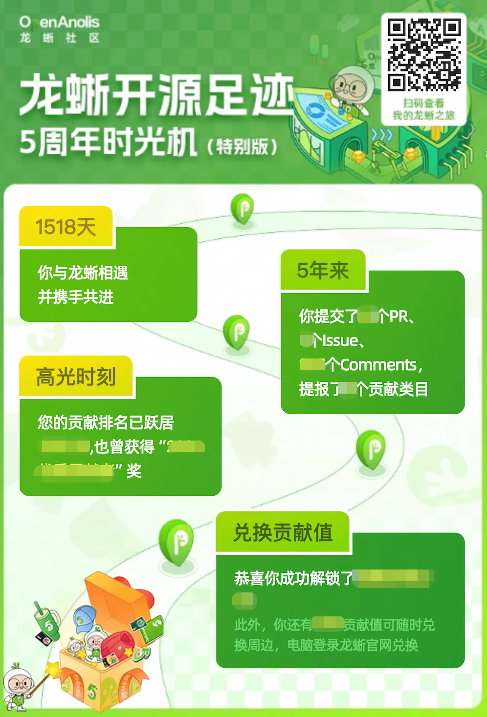 📌 兑换流程:开启龙蜥之旅,回顾年度开源足迹,点击抽盲盒。