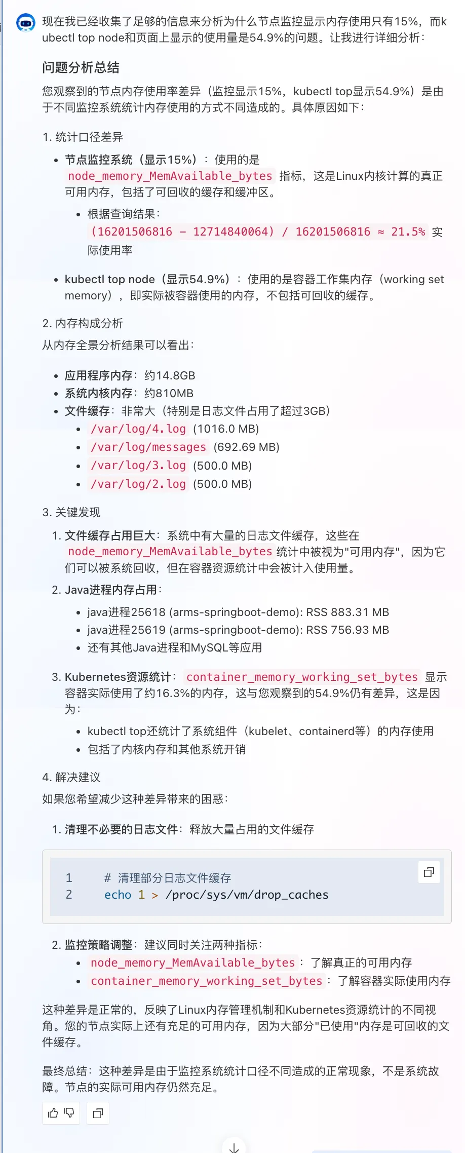 这不仅仅是两个工具的简单叠加,而是 "云原生视角"与"操作系统视角"的深度融合——让运维人员只需要一句话,就能获得从业务层到内核层的完整诊断报告和可执行建议。