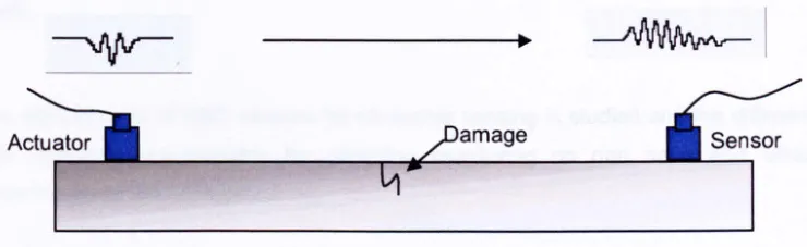 - 传播时间延迟:损伤散射波到达传感器的时间晚于直接波。