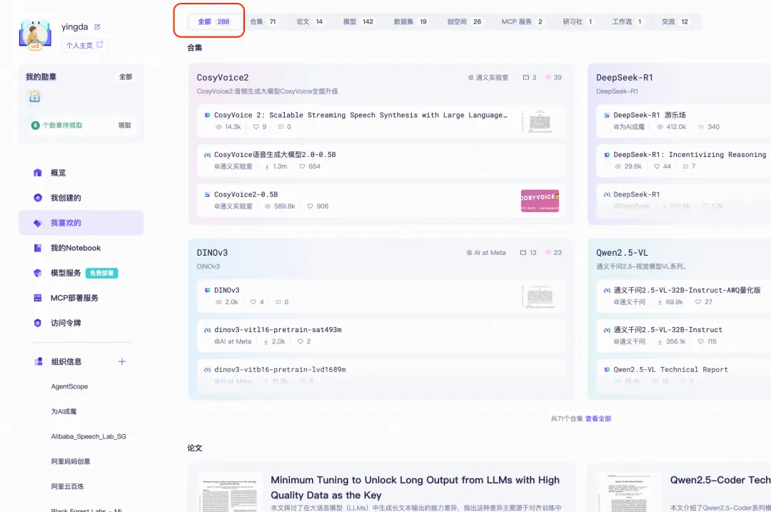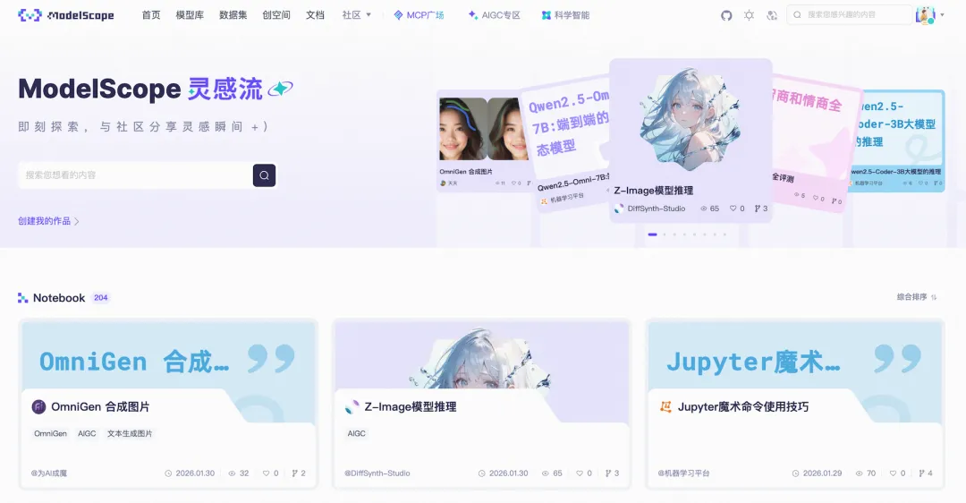 我们的国际站(modelscope.ai/)功能,包括AIGC专区(Civision)等,功能整体对齐了cn主战。魔搭正在带着更多的模型走向海外和全球。