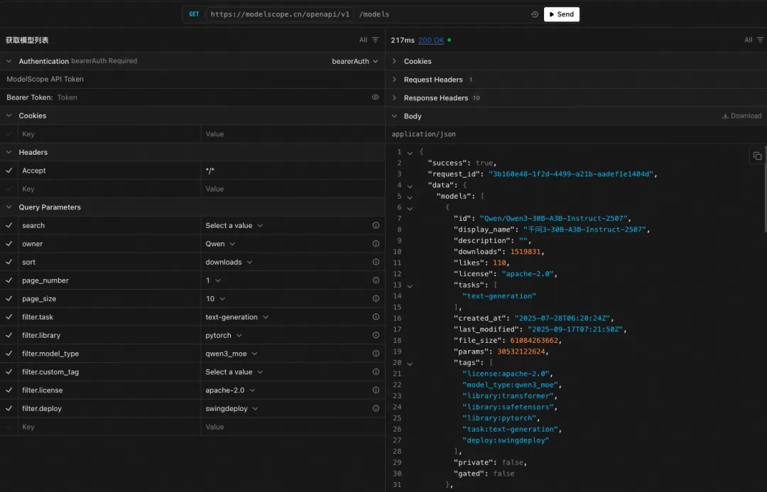 同时为了进一步推动ModelScope的核心生态能力,更便捷地与多元化下游生态进行集成,在Agentic AI 时代来临的时候,真正实现“基础设施即代码”。我们正式将ModelScope的基础平台能力,通过OpenAPI 标准接口开放,并推出了平台的OAuth授权服务。通过全方面的开放,我们希望 ModelScope 能更好承接中国乃至全球 AI 模型开源的底层基座的作用,服务最广泛的AI开源生态。