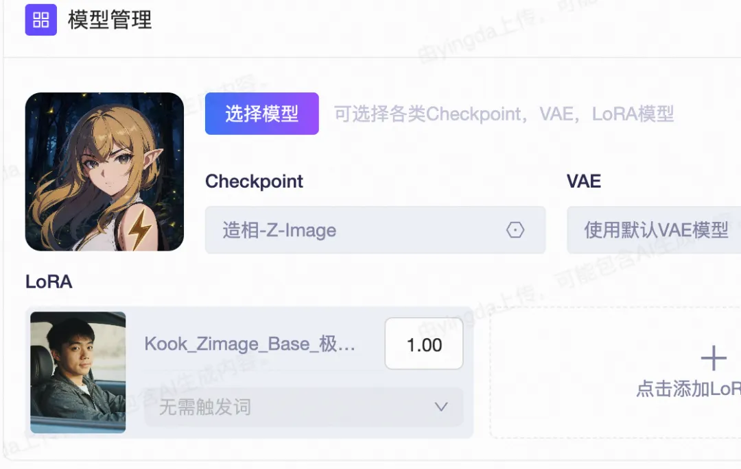 15. AIGC生图和训练界面,模型卡片配置为可点击位