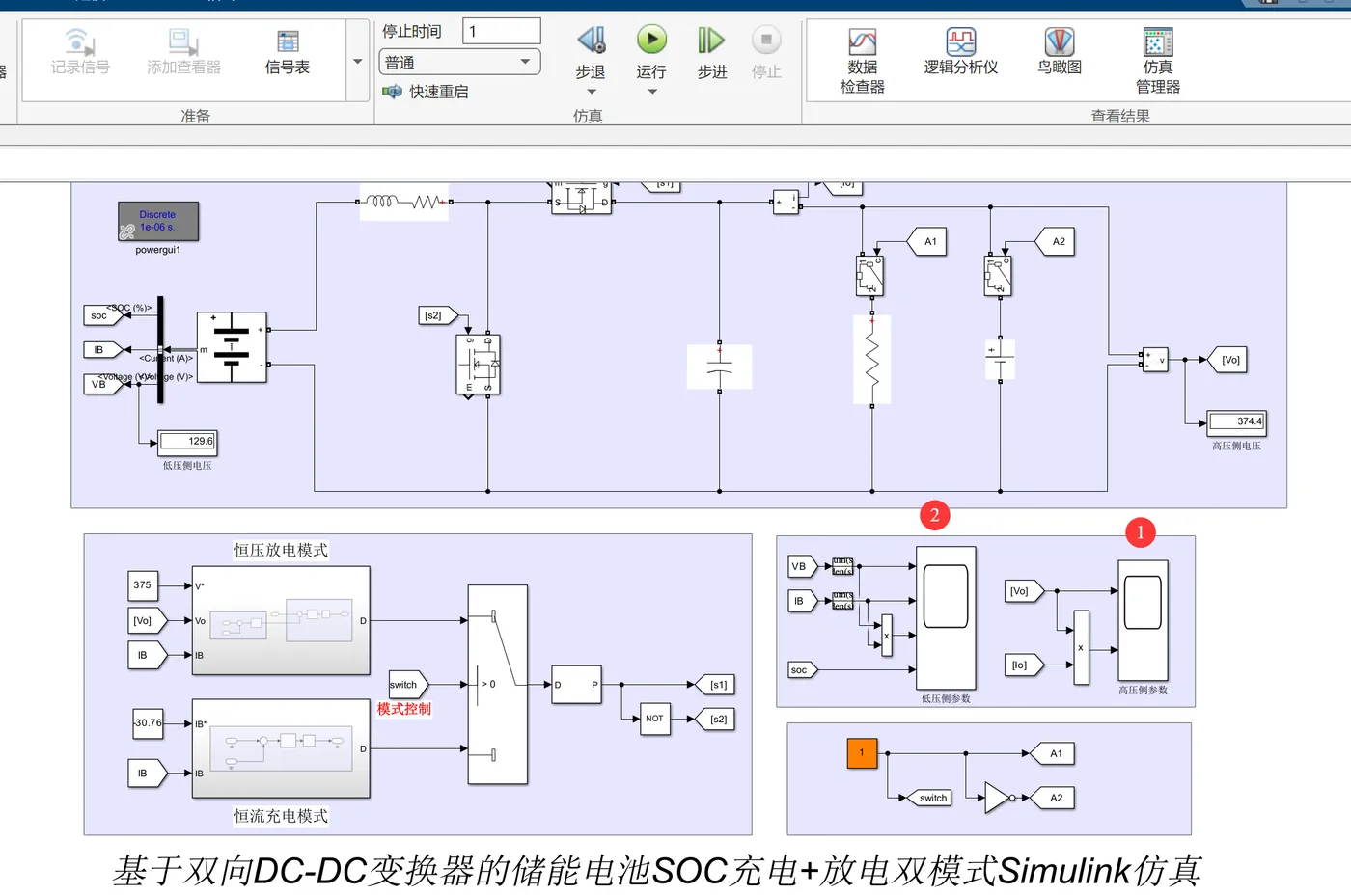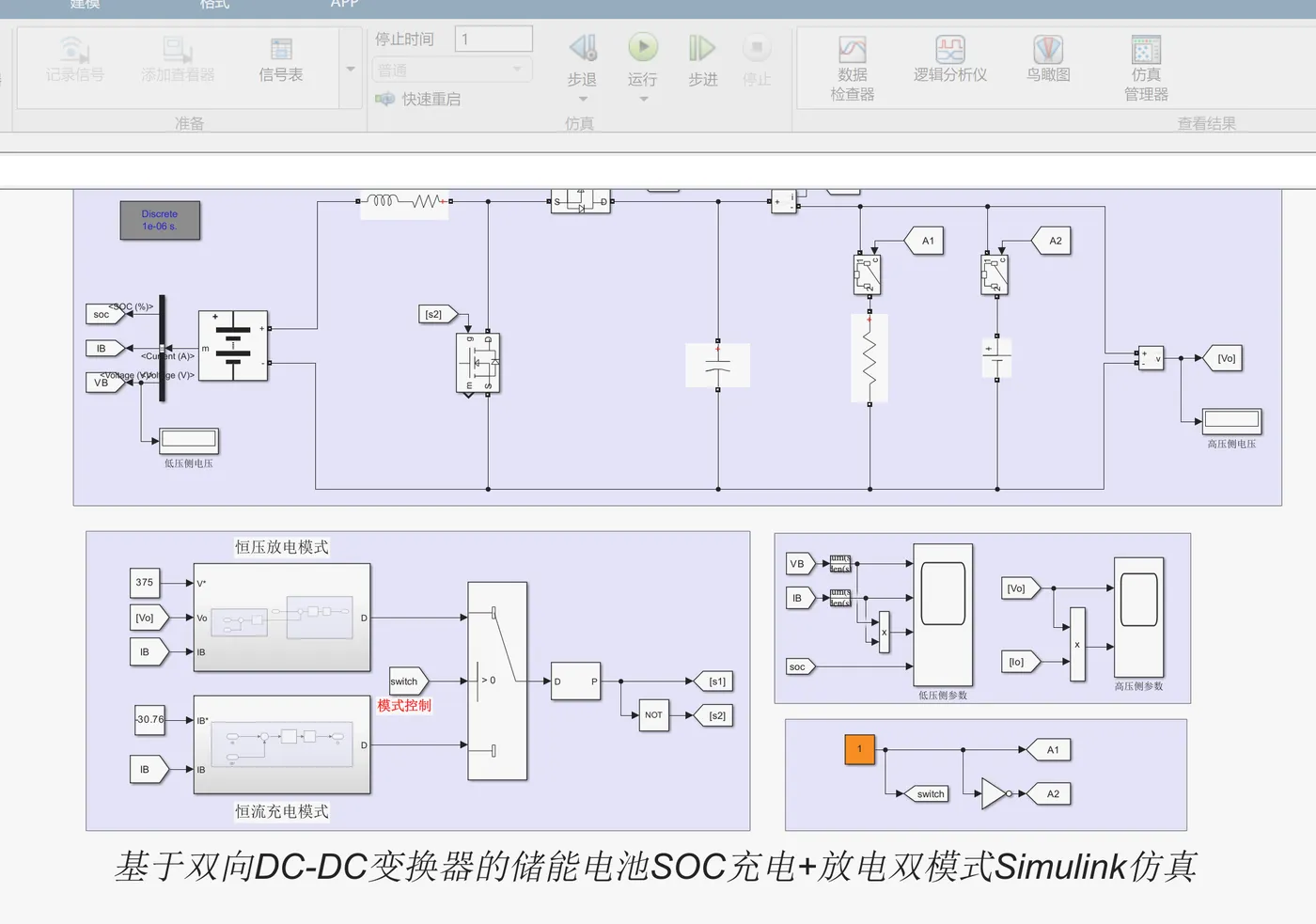 基于双向DC-DC变换器的储能电池SOC充电+放电双模式Simulink仿真研究