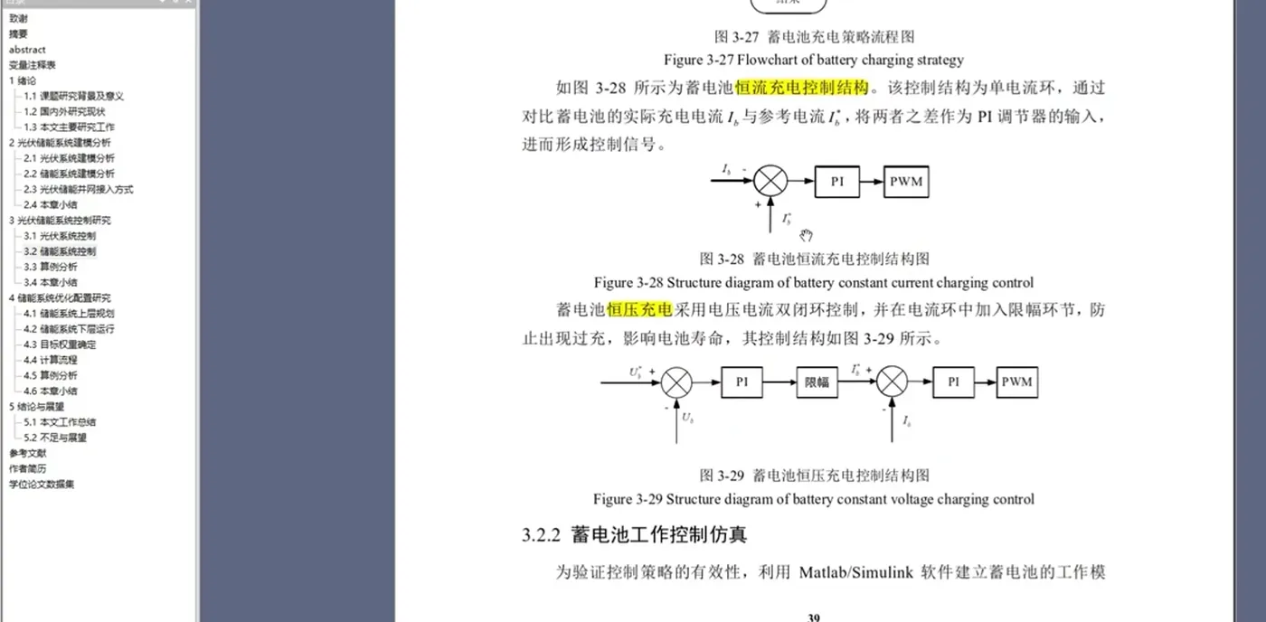 目前,已有众多学者对储能电池的充放电控制进行了研究。[文献1]针对储能电池的充电过程,提出了一种基于模糊控制的充电策略,有效提高了充电效率并减少了电池的极化效应。[文献2]则聚焦于放电模式,采用双闭环控制策略实现了放电过程的稳定输出。本文在借鉴前人研究成果的基础上,对储能电池的充电与放电双模式进行综合研究,通过Simulink仿真验证控制策略的有效性。