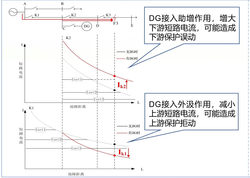 - 短路电流变化:DG助增或外汲效应导致保护范围缩减或扩大(如图1所示)。