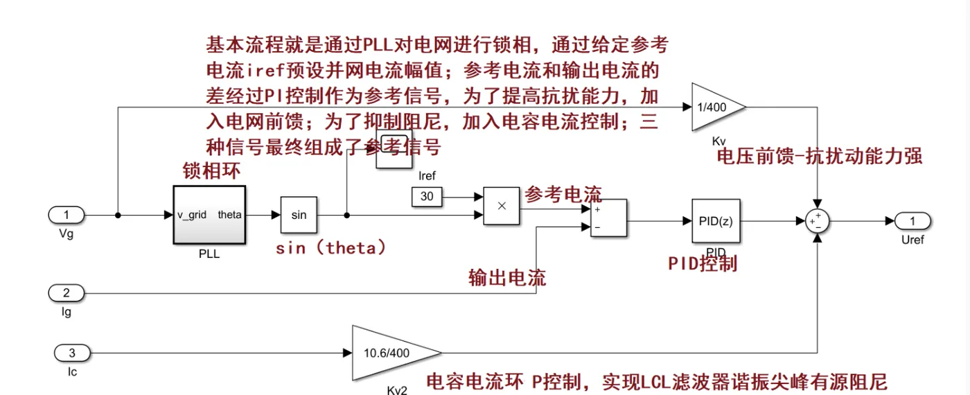 - 电流指令生成模块:根据外部电压环的输出生成并网电流参考值I*。