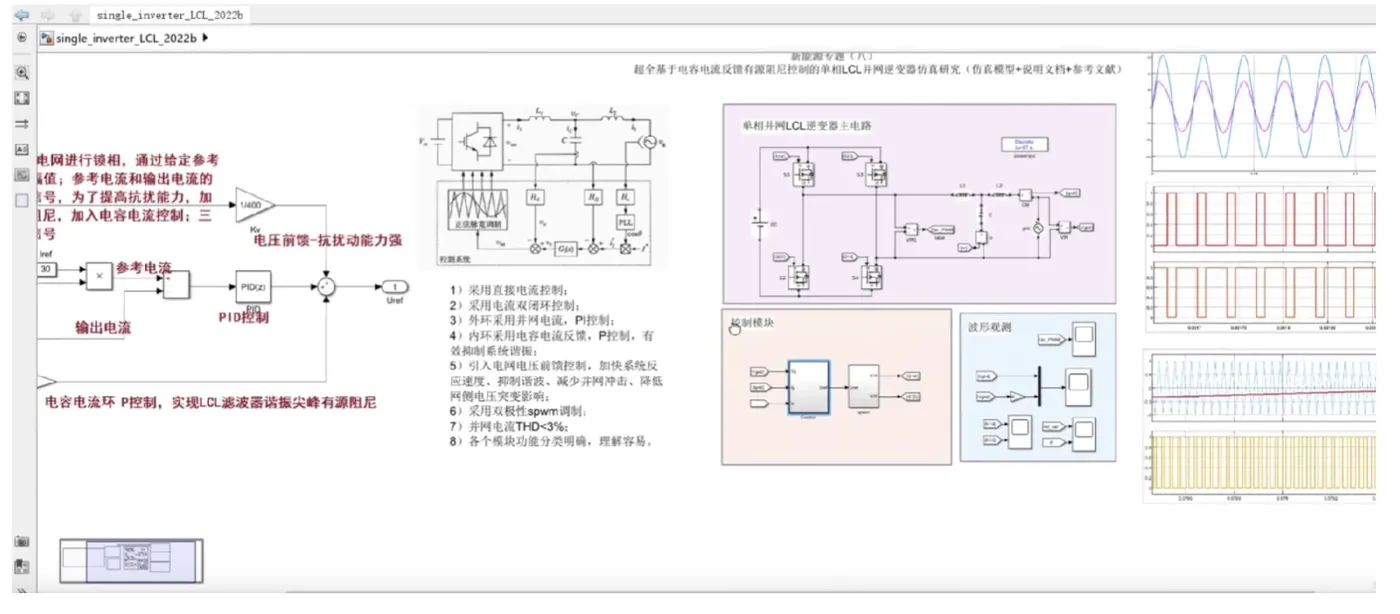 新能源专题(八)基于电容电流反馈有源阻尼控制的单相LCL并网逆变器仿真研究(仿真模型+说明文档+参考文献)