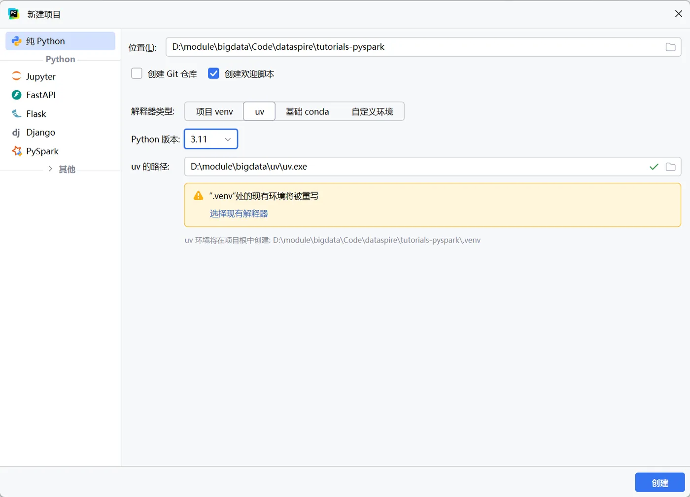 通过UV创建python3.11环境