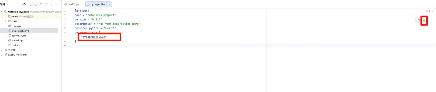 - 添加pyspark依赖项并点击刷新