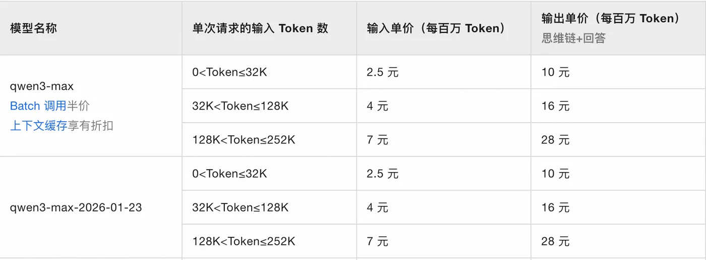 - 模型名称 model code:如 qwen3-max-2026-01-23 等