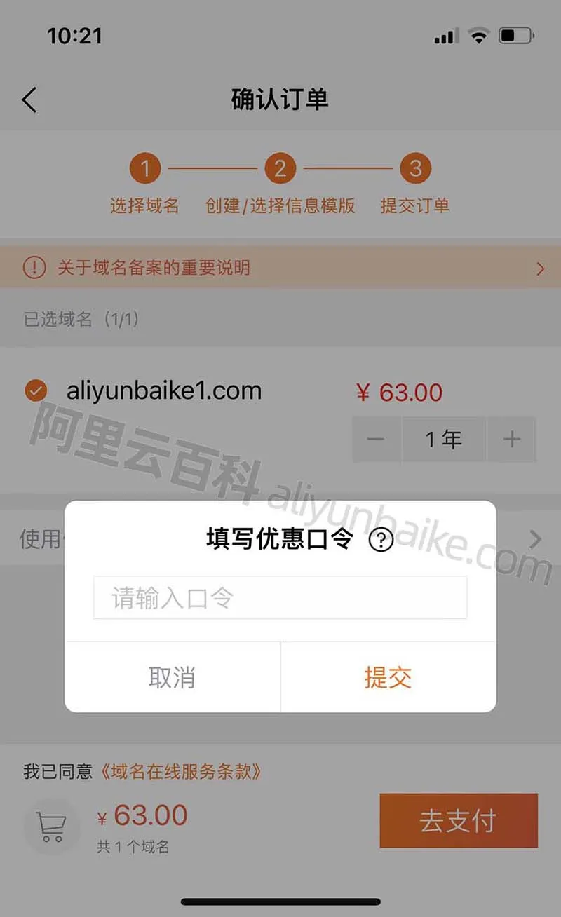 域名优惠口令使用方法