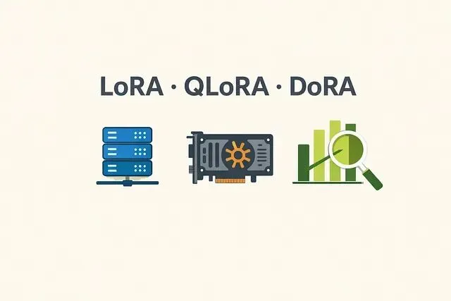 2025 年的微调生态分三层:LoRA 是底座,简单、快、生态好,多数场景够用;QLoRA 打开了消费级显卡微调大模型的大门精度还没怎么掉;DoRA 则是免费升级——跟 LoRA 成本一样但结果更好,
