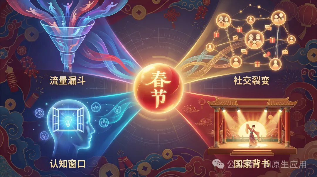 春节提供了全民级别的、高度同步的、超长时段的闲暇时间,是任何其他节日都无法比拟的注意力洪峰,为新应用传播创造了完美土壤。