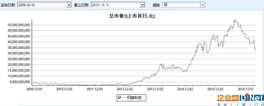 网宿科技上市以来的市值走势图,数据来源Wind数据库
