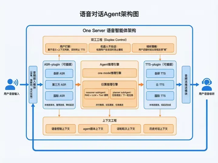 - 上下文工程:将语音对话上下和agent文本对话上下文统一管理,更好的控制双工对话。