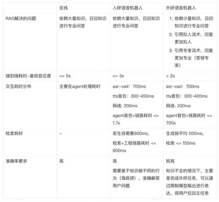 而在在线,入呼和外呼场景下对RAG的要求也是不一样的。