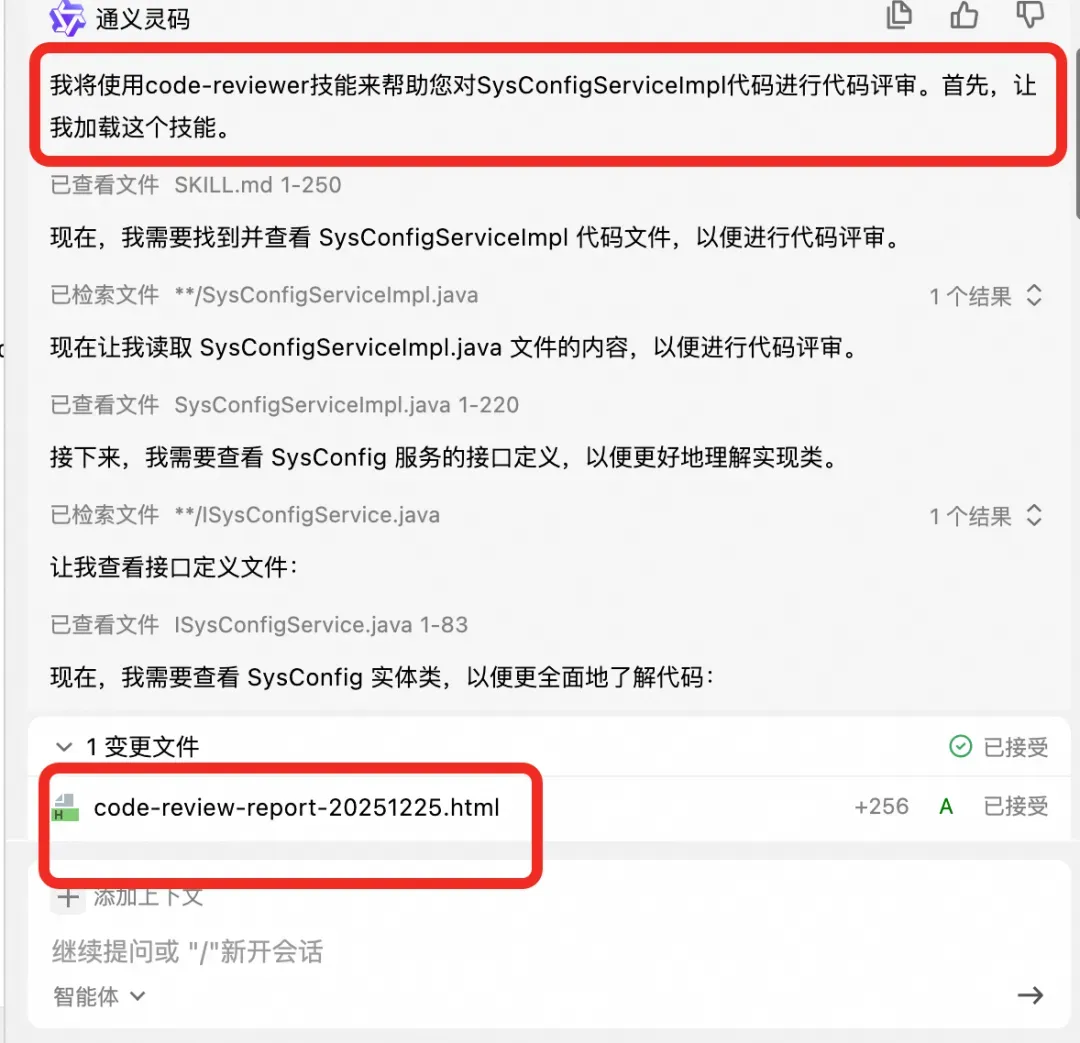我们也可以实现自己的Skill,以代码审核场景为例,实现举例如下: