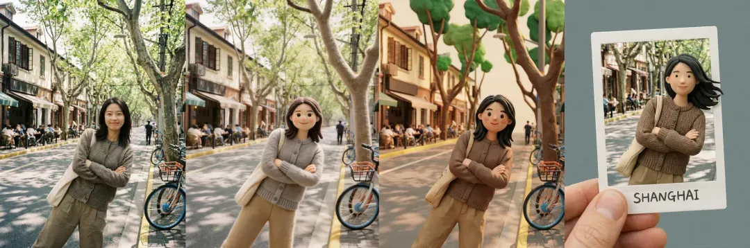 同时,用户也可上传数张图片进行编辑,生成诸如九宫格多手势自拍、全景式人物图像拆解、多种创意风格造型,以及诗词配图等。
