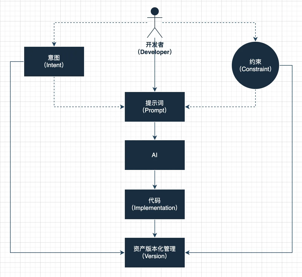 核心思想:约束优于自由。开发者在AI生成过程中主动注入约束(安全/合规/效率规则),确保输出代码符合形式合规性与意图一致性,而非无约束自由生成。