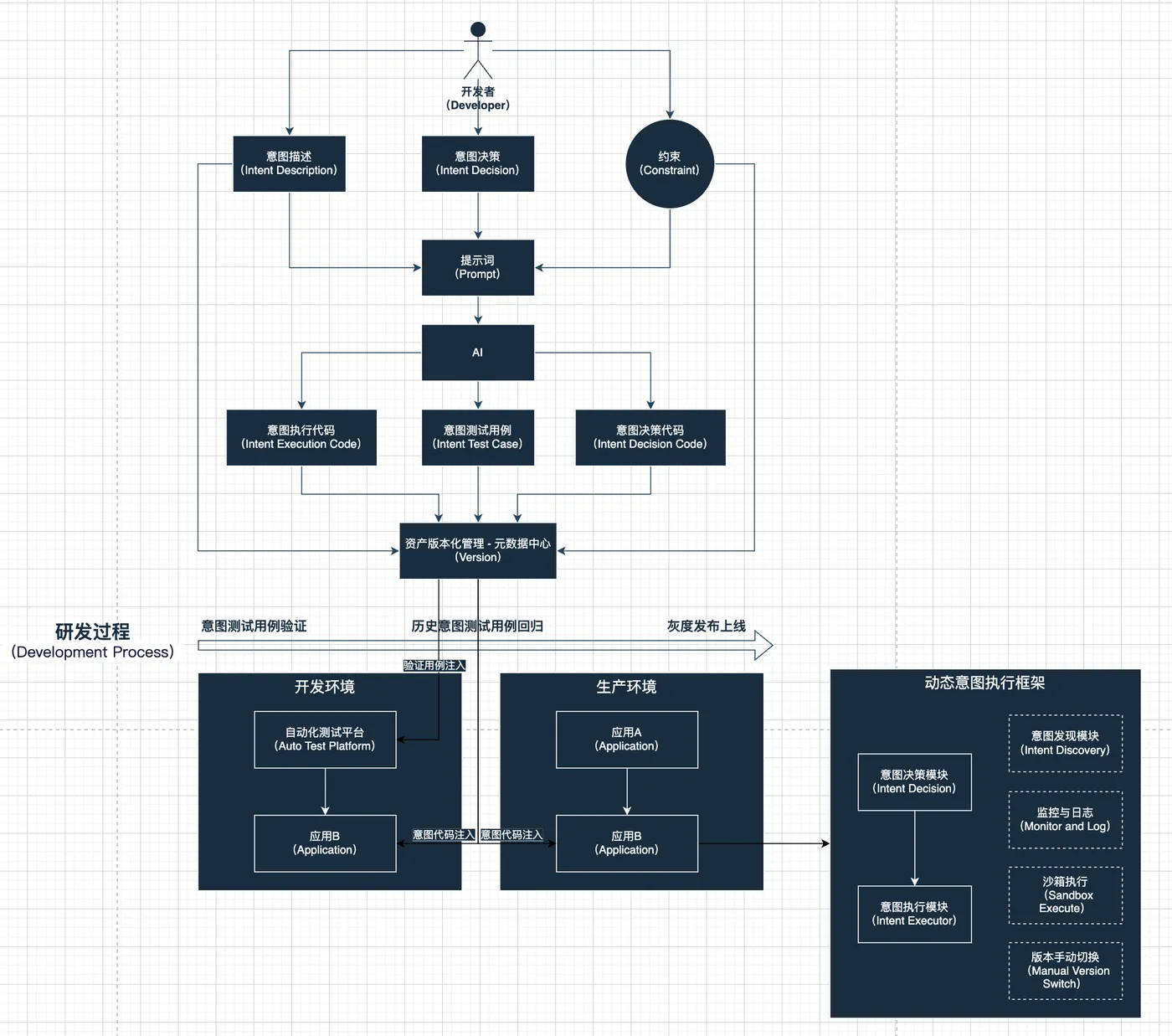 集成动态意图执行框架后,基于现有代码生成意图与约束文件,由AI驱动生成新代码;验证通过后渐进切换至新执行链路。