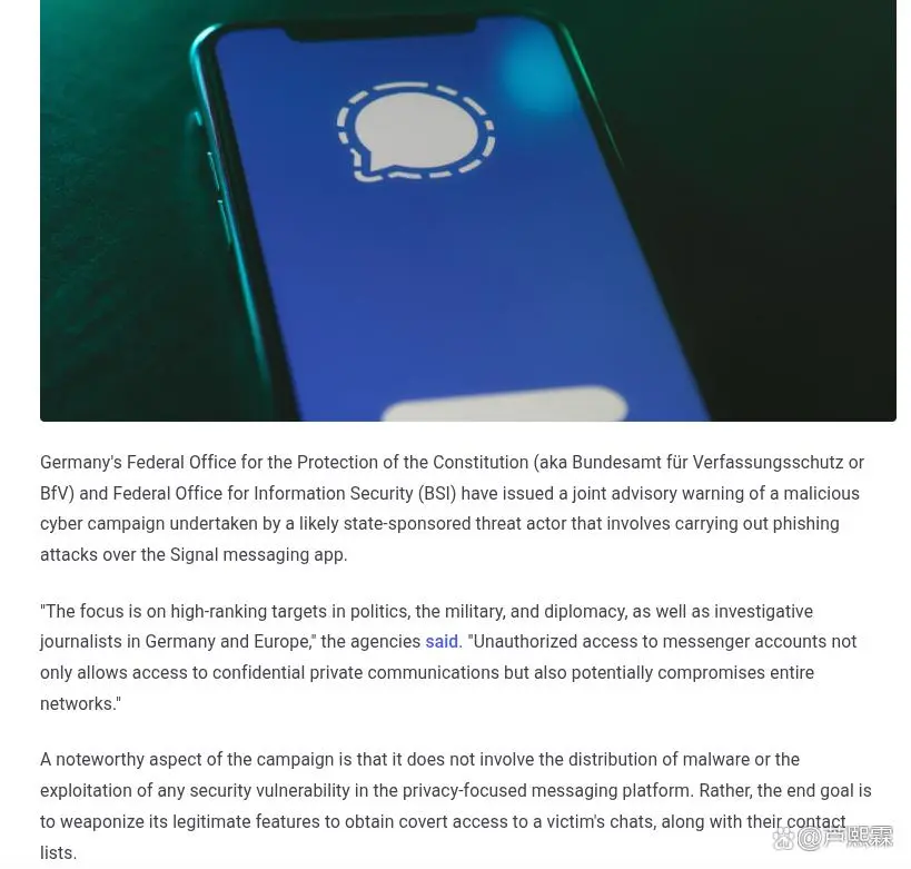 此次德国通报的攻击行动具有典型的“鱼叉式钓鱼”(Spear Phishing)特征,但其精准度远超常规邮件钓鱼。攻击者首先锁定了特定的高价值目标群体:德国及欧洲各国的政界高层、军方指挥官、外交官以及从事敏感调查的记者。这类人群的共同特征是持有高度敏感的沟通内容,且往往处于高压、快节奏的工作环境中,对“紧急通知”类信息的警惕性虽高,但在特定情境下易产生认知过载。