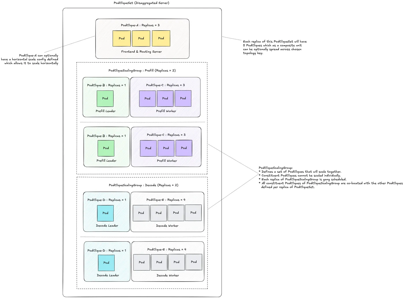 - Kthena:通过 Volcano 实现网络拓扑感知调度,并支持同构、异构、Role 级别的多维度弹性伸缩。