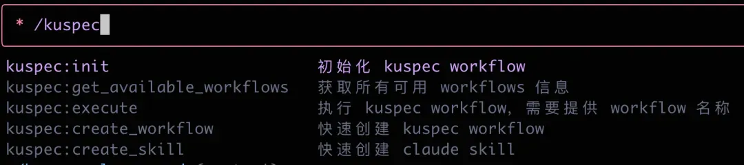 以 kuspec 为例,实现了一个 CLI 工具,可以让用户选择对应的 Agent 进行集成: