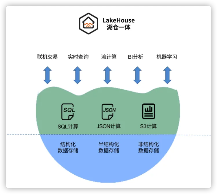 湖仓一体相当于数据湖的低成本海量存储配上数据仓库的强大管理&查询性能。在物理上,数据可能只存储一份在“湖”里,但在逻辑上,你可以像使用数据仓库一样,对这些数据执行高效、可靠的分析查询;同时,你也能随时像使用数据湖一样,去访问最原始的、多格式的数据进行探索。