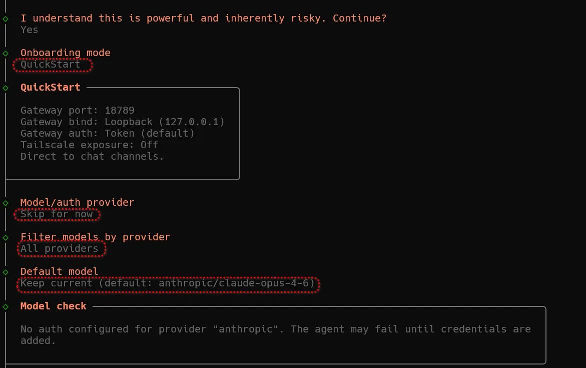 8、这里没有配置模型,我是等最后去修改配置文件的所以我选择了skip for now ,选择默认model