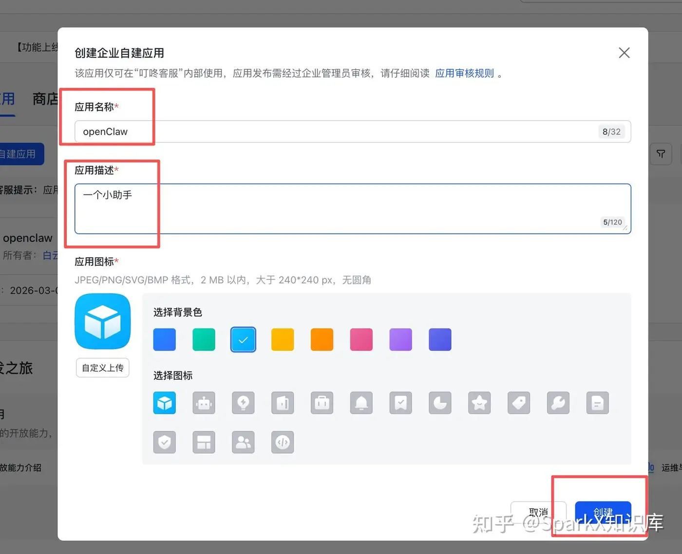 在弹出的内容中输入名称,描述,并确定就可以创建应用了