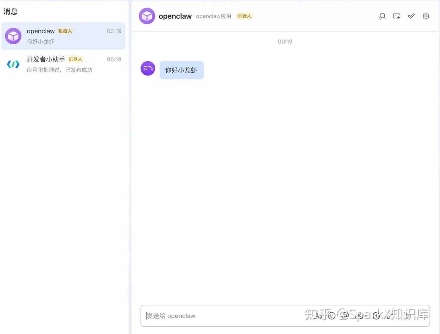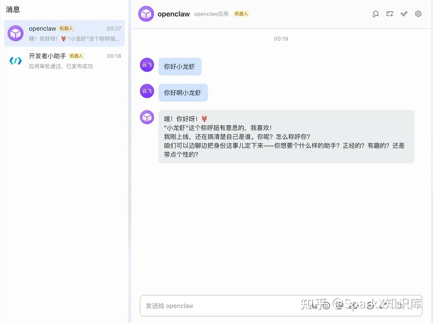 我们跟小龙虾进行交互,输入问候语