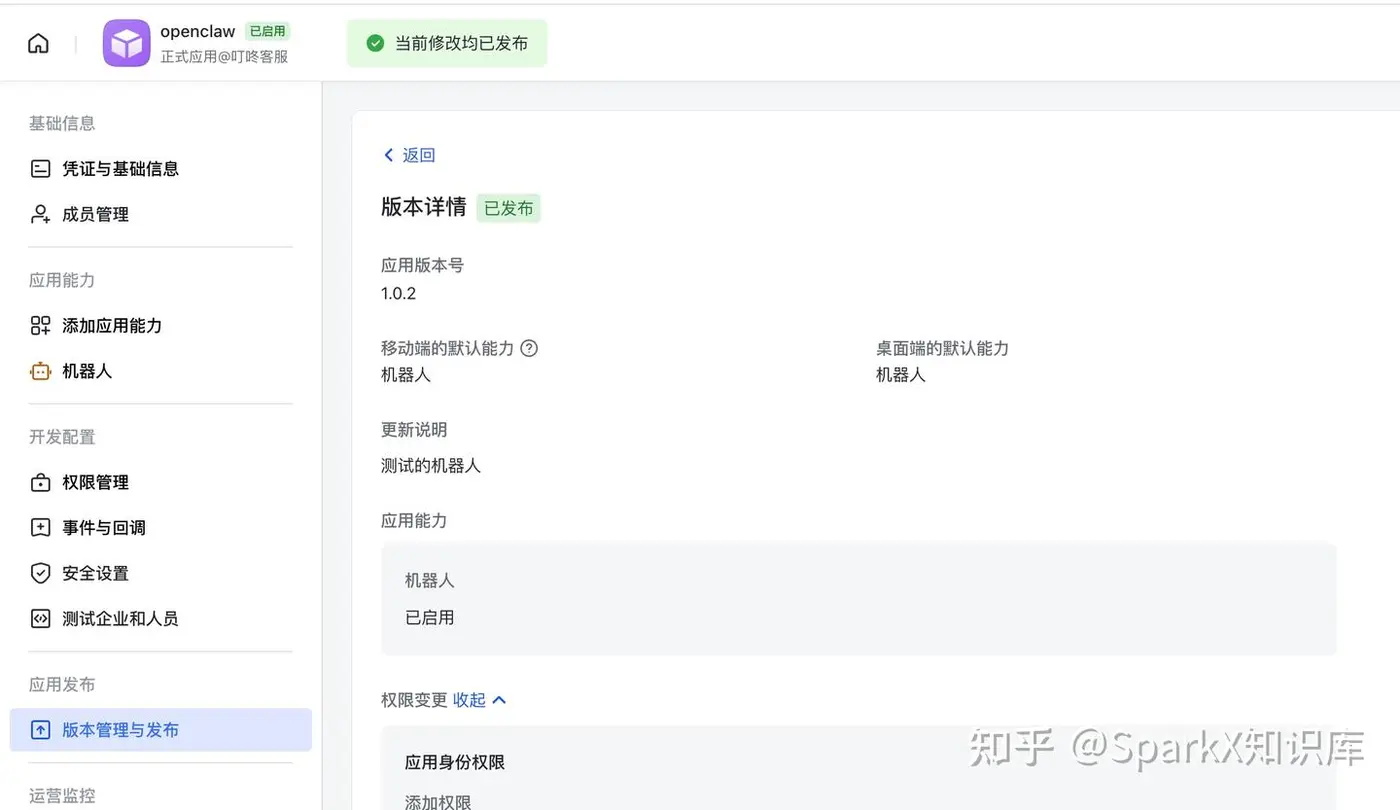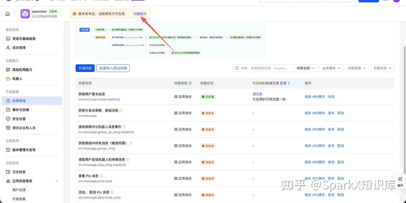 发现这里少了一些权限的配置,导致我们无法与飞书交互。只要改成如下的样子