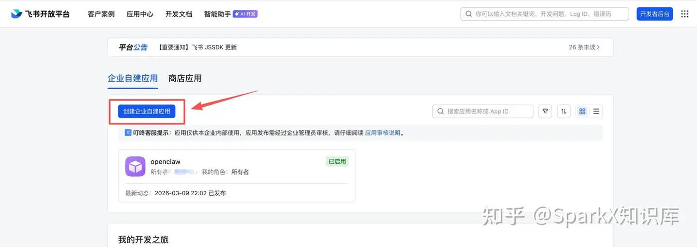 我们不着急点击enter,先打开飞书平台,配置好一些我们需要用到的东西。打开飞书开发者平台 飞书开放平台