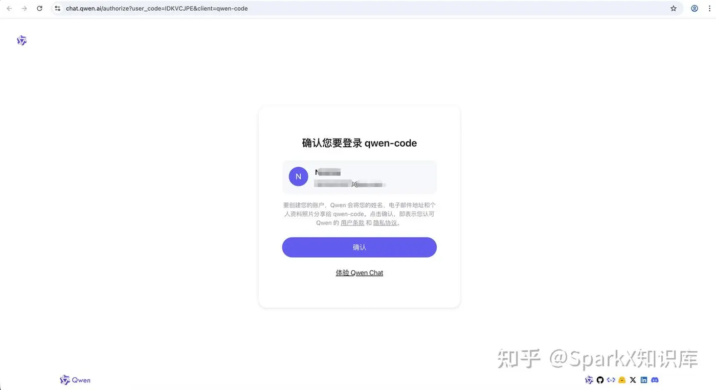 此时浏览器会自动跳转到 Qwen 授权的页面