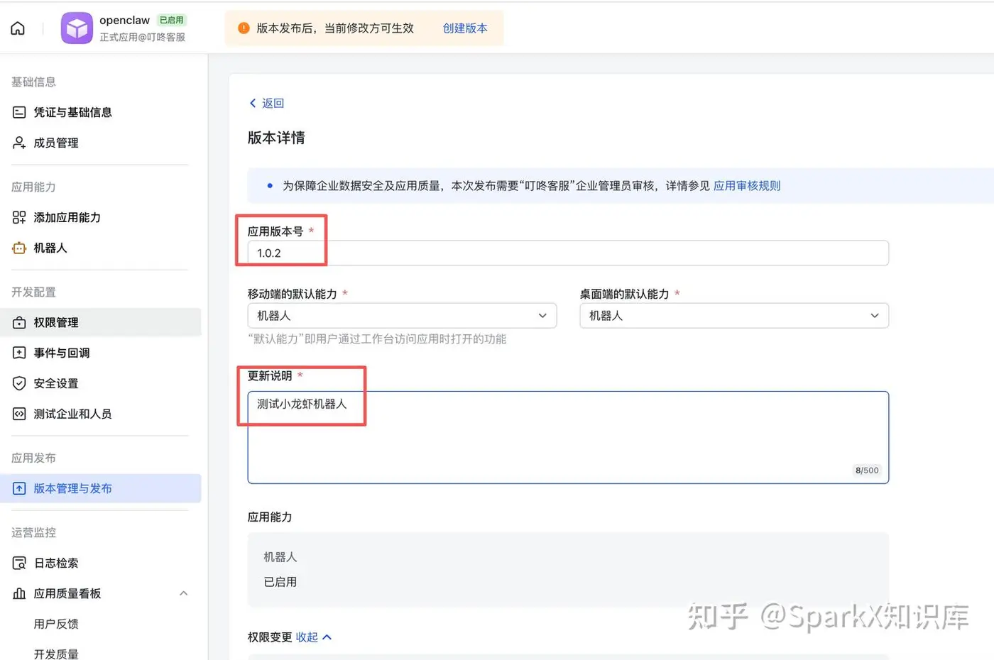 我们输入一个纯数字版本的版本号,比如 1.0.0 或者 1.0.1 这个随便你怎么设置。点击最下面的保存,并发布上线