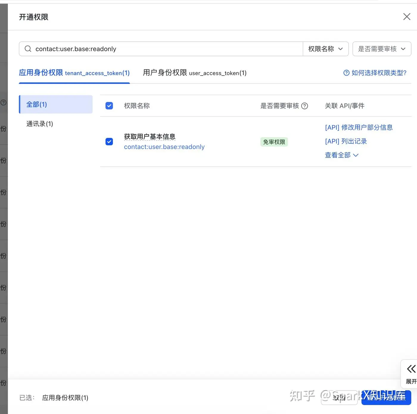 | contact:user.base:readonly | 用户信息 | 获取基础用户信息 |