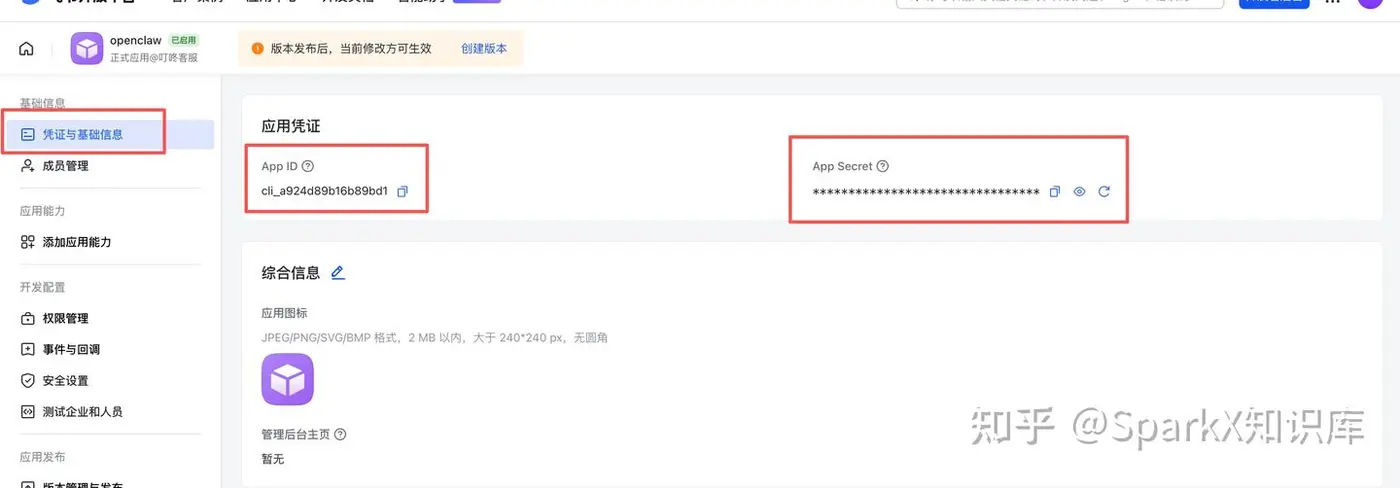 点击进入应用,点击左侧的 基础信息 -> 凭证与基础信息