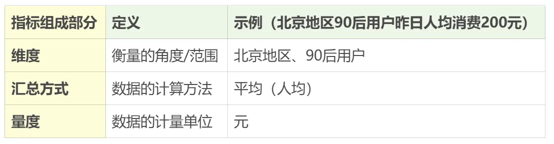 - 维度:从哪个角度看?比如“北京地区”、“90后用户”。
