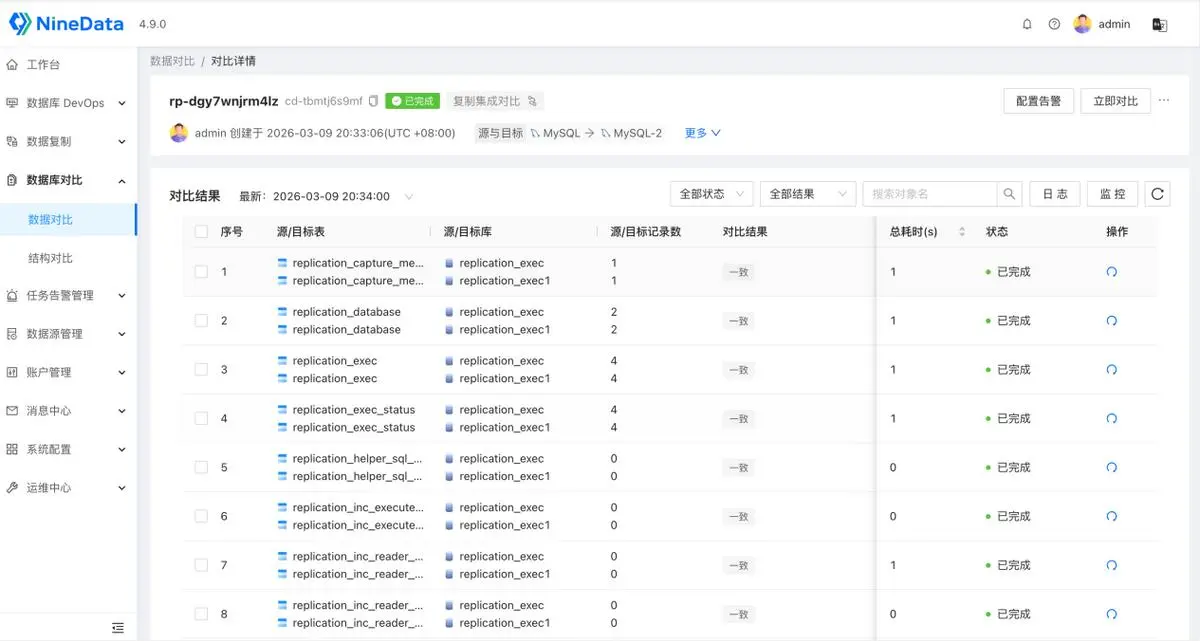 NineData 数据对比:标准化的 “一致性校验方案”