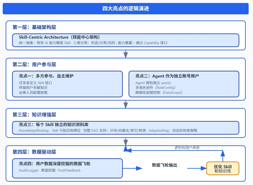 Ooder-Skills 的四大亮点不是孤立的特性,而是一个有机的整体,它们之间存在着紧密的逻辑联系: