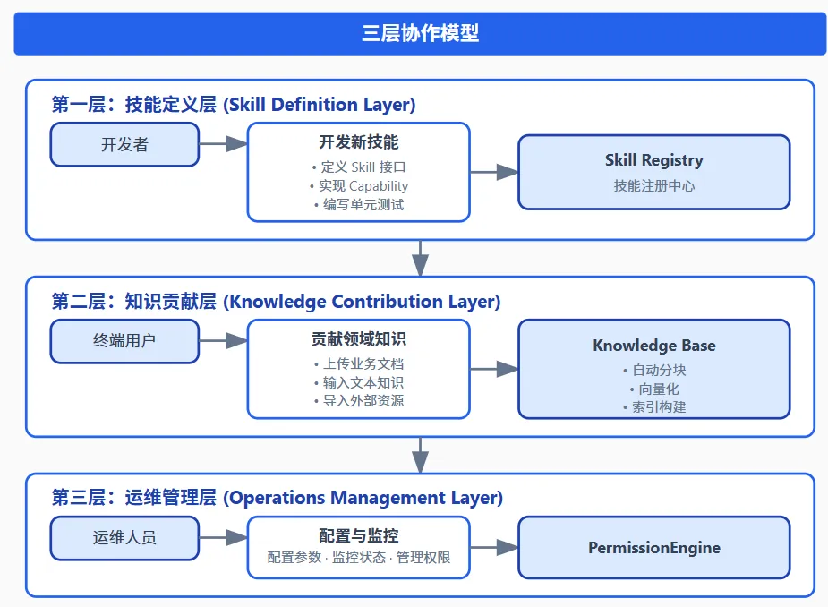 - 多方参与、自主维护:打破开发者、运维、用户之间的壁垒,让每个人都能为技能生态贡献力量