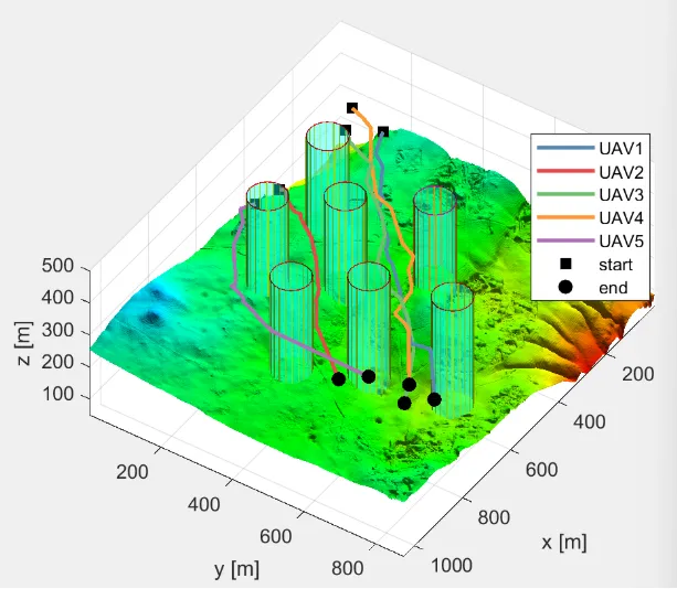3. 多无人机协同避障:多架无人机在飞行过程中不仅要避开环境中的障碍物,还需避免相互碰撞,这就要求各无人机的路径规划具有协同性和协调性,增加了路径规划的难度。