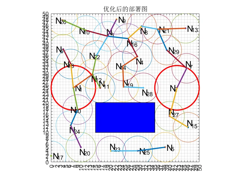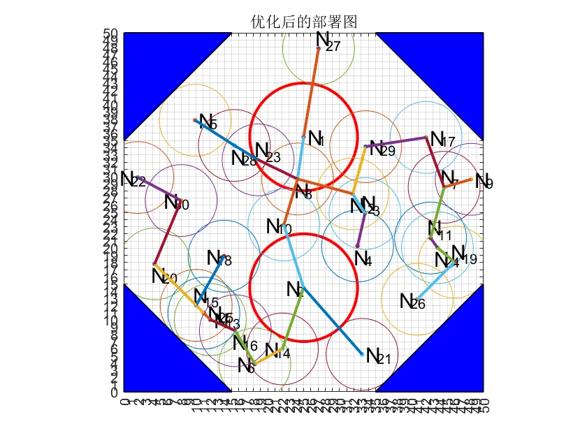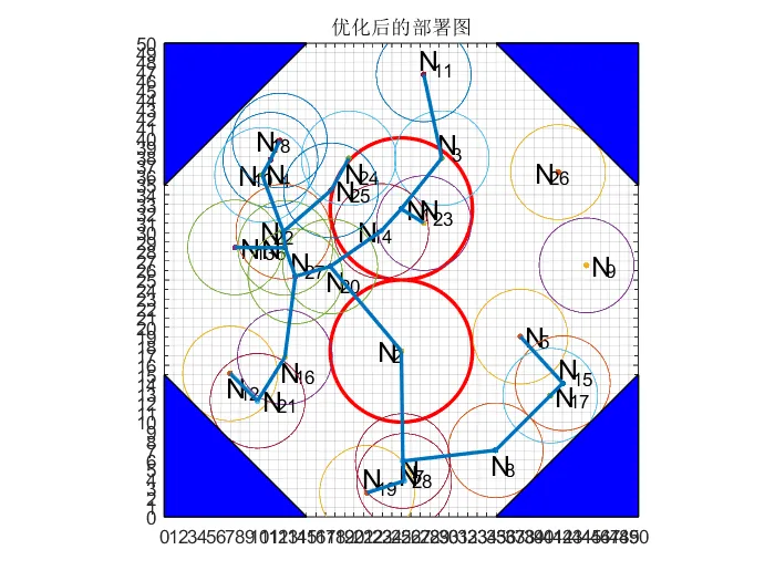 针对无线传感器网络节点在监测区域内覆盖障碍物时的优化问题,本文基于灰狼优化算法提出改进型灰狼优化算法(IGWO),以解决收敛速度慢、搜索精度低及易陷入局部最优等缺陷。首先设计非线性收敛因子以平衡全局搜索与局部搜索的关系,引入精英策略防止优秀个体在迭代过程中被破坏,并改进原始加权策略使领头狼能更合理地引导其他灰狼进行捕猎。通过设计灰狼边界位置策略并引入动态变异策略,增强了种群多样性并提升算法跳出局部最优的能力。随后采用基准函数对遗传算法、粒子群优化算法、灰狼优化算法及 IGWO 算法的收敛性能进行测试,结果表明 IGWO 算法的收敛性能优于其他三种算法。最后将 IGWO 算法应用于障碍物(矩形障碍物、梯形障碍物及三角形障碍物)的无线传感器网络部署场景。仿真结果表明,与 GWO 算法相比, IGWO 算法能有效提升无线传感器网络节点的覆盖范围,用更少节点实现更高覆盖率,从而降低网络部署成本。