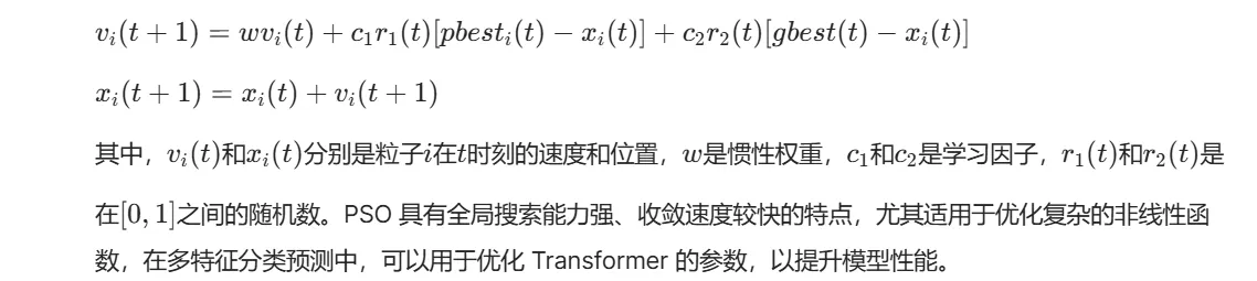 将 PSO 与 Transformer 相结合,旨在优化 Transformer 的参数,提高其在多特征分类预测中的性能。