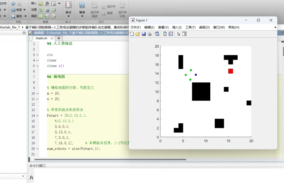 - 动态避障 :在多智能体编队运动过程中,每个智能体都利用人工势场法进行避障。当检测到障碍物时,智能体周围的势场发生变化,产生斥力。智能体根据斥力和引力的合力调整运动方向,从而避开障碍物。对于编队中的跟随者,在避障过程中既要考虑自身与障碍物的距离产生的斥力,也要确保不偏离与领航者的相对位置关系。例如,在一个多机器人编队在复杂环境中行进时,当某一机器人检测到前方有障碍物时,它会根据人工势场计算出的合力改变运动方向,同时通过与领航机器人的通信和自身的控制算法,保持与编队其他机器人的相对位置,使整个编队能够顺利绕过障碍物继续前进。