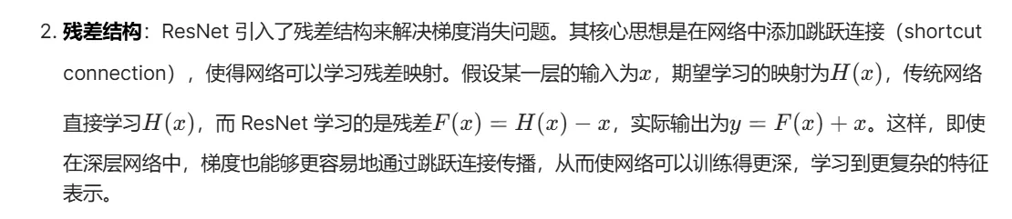 - 深度神经网络的梯度消失问题:在传统的深度神经网络中,随着网络层数的增加,梯度在反向传播过程中会逐渐减小,导致靠近输入层的神经元难以更新权重,即出现梯度消失问题。这使得深层网络难以训练,模型性能无法随着网络深度的增加而提升。