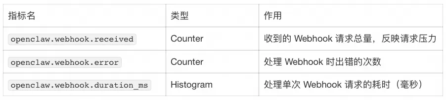Webhook 是 OpenClaw 与外部系统交互的重要入口。监控收到的请求量、错误次数和处理耗时,可及时发现外部调用异常,保障对接稳定。